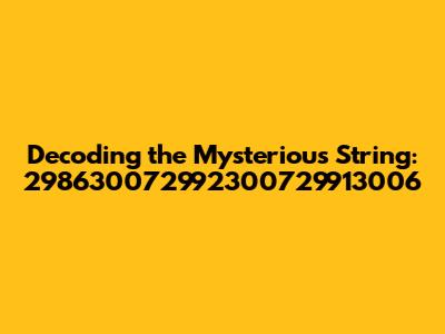 Hey guys, let's dive headfirst into this intriguing string: 298630072992300729913006. It might look like a random jumble of numbers, but trust me, there's a good chance there's a fascinating story behind it. We're going to explore what this string could possibly represent, break down how we might start to understand it, and peek at the possibilities of where it came from. Buckle up, because we're about to go on a serious digital treasure hunt!