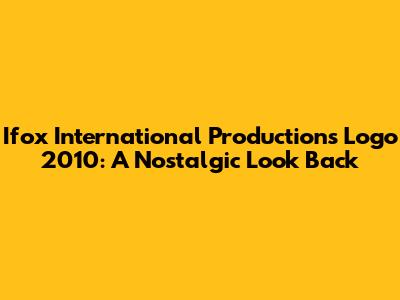 Ifox International Productions Logo 2010: A Nostalgic Look
