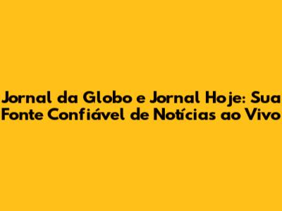 Jornal Da Globo E Jornal Hoje: Notícias Ao Vivo E Atualizadas