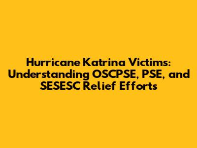 Hey guys! Let's dive into a crucial topic: the relief efforts for Hurricane Katrina victims. This devastating event prompted numerous organizations to step up, and among them were groups operating under acronyms like OSCPSE, PSE, and SESESC. Understanding their roles and contributions is super important to appreciating the full scope of the recovery process. So, let's break it down in a way that's easy to grasp. When discussing disasters such as Hurricane Katrina, it is crucial to understand how various organizations mobilized to provide aid and support to the victims. Acronyms like OSCPSE, PSE, and SESESC may represent different facets of these relief efforts, including governmental bodies, non-profit organizations, or specific programs designed to address particular needs of the affected population. Each entity plays a unique role in the comprehensive response to such large-scale crises, working independently and in collaboration to mitigate the impact of the disaster and facilitate the recovery process. It is essential to explore the functions and contributions of each of these organizations to gain a holistic view of the overall relief and reconstruction endeavors undertaken in the wake of Hurricane Katrina. By examining the specific actions and initiatives implemented by OSCPSE, PSE, and SESESC, we can better comprehend the complexities involved in disaster relief and the diverse approaches employed to assist those affected by the catastrophic event.