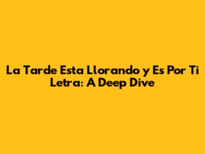 Hey guys! Ever heard a song that just gets you right in the feels? Like, you don't even need to know the language to understand the raw emotion behind it? Well, let's talk about "La Tarde Esta Llorando y Es Por Ti." This phrase, which translates to "The afternoon is crying and it's because of you," is a powerful line that speaks volumes about heartache, longing, and the pain of lost love. In this article, we're diving deep into the meaning of this phrase, exploring its cultural context, and understanding why it resonates with so many people.