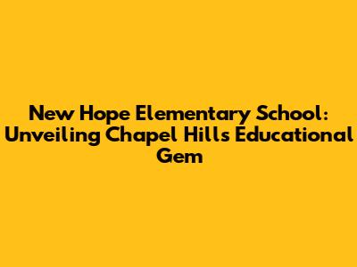 Alright, so what sets New Hope Elementary School apart from other schools in the area? Well, there are several things that make it a truly special place. One of the key differentiators is its strong sense of community. The school fosters a welcoming and inclusive environment where everyone feels valued and respected. This sense of belonging creates a positive atmosphere that supports student success. The teachers and staff at New Hope Elementary School are dedicated to providing individualized attention and support to each student. They go above and beyond to meet the unique needs of every child, creating a personalized learning experience. The school's commitment to diversity and inclusion ensures that every child feels represented and celebrated. This creates a rich and diverse learning environment where students can learn from one another and develop a greater understanding of the world. New Hope Elementary School also boasts a strong focus on character education. They teach important values such as respect, responsibility, and kindness, helping students develop into well-rounded individuals. This focus on the whole child goes beyond academics and emphasizes social-emotional learning, which is critical for success in life. The school offers a wide range of extracurricular activities, catering to various interests. This allows students to explore their passions, develop new skills, and connect with their peers outside of the classroom. These activities contribute to a well-rounded education and help students develop important life skills. Another unique aspect of New Hope Elementary School is its commitment to innovation. They embrace new technologies and teaching methods to create an engaging and dynamic learning environment. The school is always looking for ways to improve and enhance the educational experience for its students. Finally, the location of New Hope Elementary School is a major draw. Situated in the heart of Chapel Hill, it offers easy access to the resources and amenities of a vibrant community. The school's location also provides opportunities for field trips and community service projects. New Hope Elementary School is a place where academic excellence, a strong sense of community, and a commitment to the well-being of every student come together. It's a place where children can thrive, develop a love of learning, and build lasting friendships. If you're looking for a school that offers something truly special, New Hope Elementary School is worth considering.