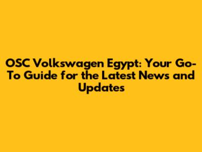 OSC Volkswagen Egypt: Latest News & Updates