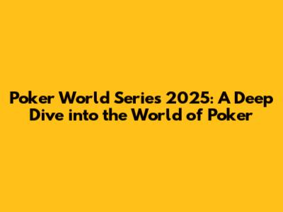 Poker World Series 2025: Everything You Need To Know